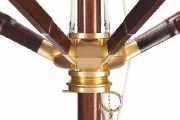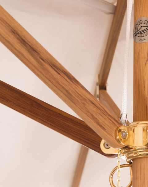The solid brass fittings complement the oak beautifully while providing lasting durability. Combined with our signature open and close system, these brass components develop a rich patina over time, adding character to each umbrella.