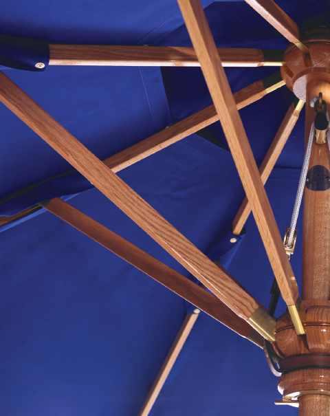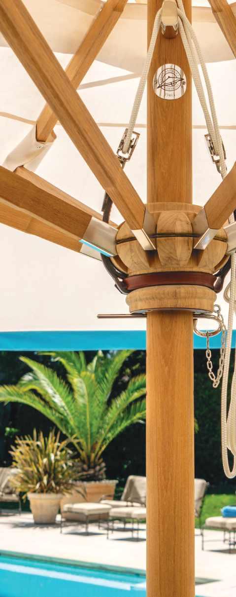Every umbrella is bench made, hand-finished and individually registered by skilled craftsmen at our Southern California facility. We use highperformance, marine-grade materials that withstand extreme conditions—from UV-resistant finishes on premium timber to rustproof brass and stainless fittings to commercial-grade canvases that resist mildew and offer superior sun protection.