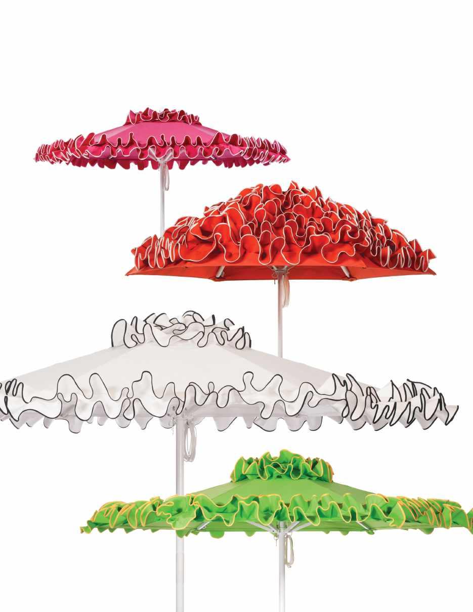 The signature Flamenco makes an unapologetic statement with its fully frillcovered canopy, creating waves of fabric that move with the breeze like a dancer in motion. For those who prefer subtlety, the Petite Flamenco offers the same Spanish spirit with clean lines and precisely tailored ruffles.