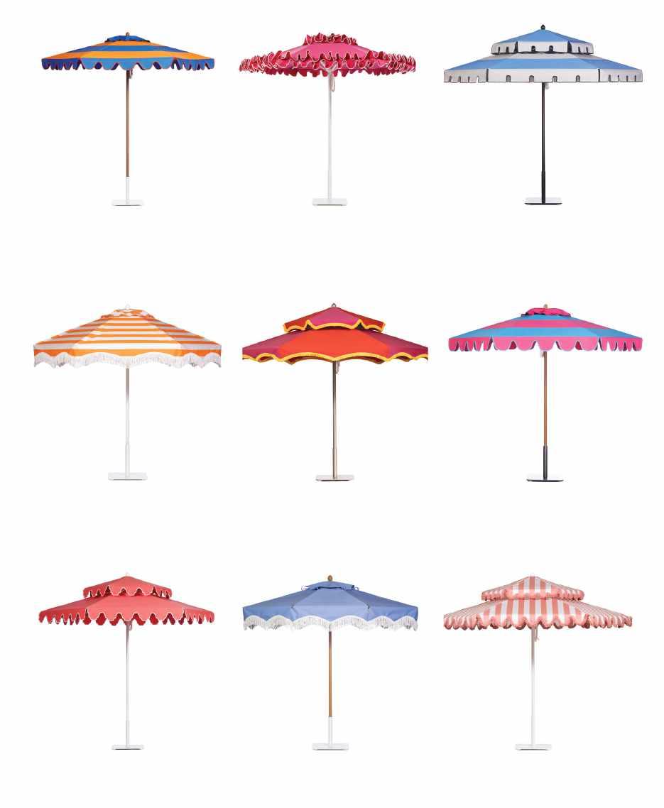 A throwback to the ‘60s and ‘70s, the Double Decker® umbrella pays homage to the midcentury modern movement. Made famous by the photography of Slim Aarons, this twotiered showstopper became a fashionable addition to many iconic California landscapes and epitomized the glamorous poolside lifestyle of the era.
