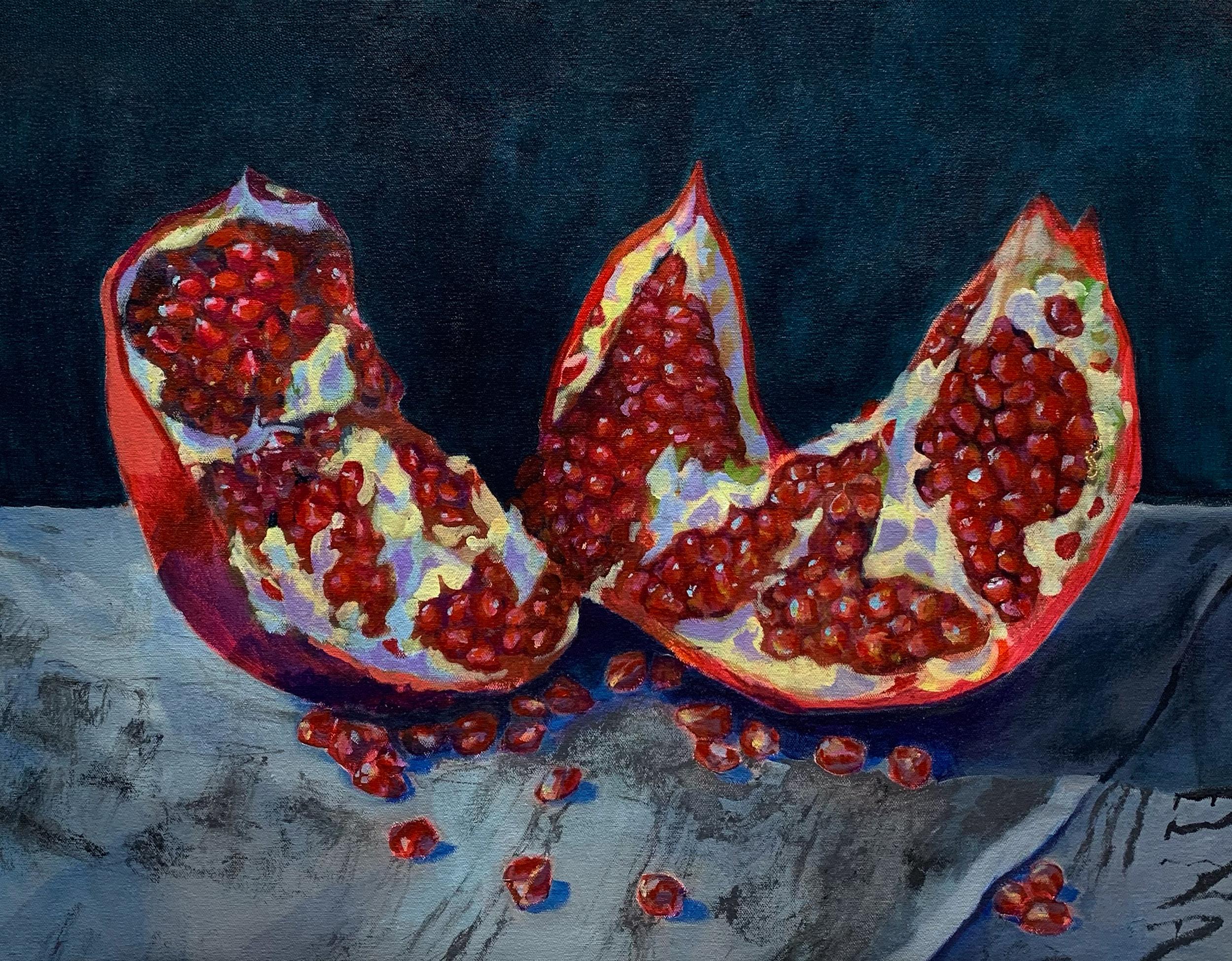 Left Column: Skyler Green, The Pomegranate Theory, Acrylic on unstretched canvas