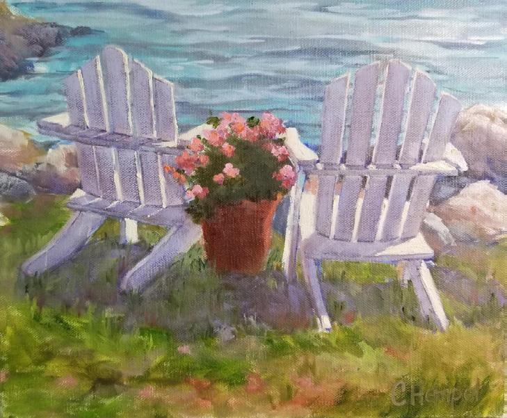 Purple Adirondack, oil by Faculty Artist Cathy Hempel