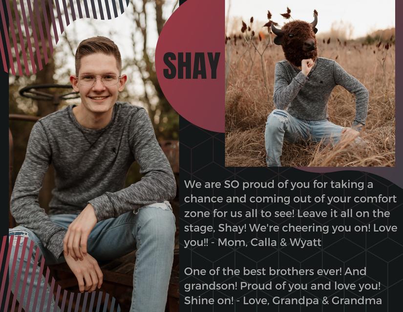 Kruse Kreager has attended Sunrise since he was in daycare and has been a part of drama since his sophomore year with the musical production Mary Poppins. Since then, he has performed as Paul Sycamore in You Can't Take It With You and Charles Haversham in The Play That Goes Wrong, which he said was his favorite Kruse enjoys most the memories that he and the people involved in drama made e wants to thank his friends for convincing him to get into considers it a core memory of his high school years that is favorite Bible passage is 1 Corinthians 13.