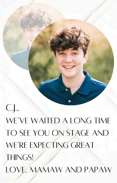 JadonMorrishasbeeninvolvedina numberoftheshowshereatSunrise. HehasdonetechforAnastasia,A GrandNightforSinging,andLes Misérablesworkingbackstageandon set,helpingduringandafterschool. Healsoplayedfootballinthefall.After hegraduatesinthespring,hehas severaldifferentoptionsforhisfuture, includingtradeschool,UPS,orthe military.HelovesreadingGod’sWord andlearningmoreabouthowJesuswas asapersonandithashelpedinspire himinhisownlifetostrivetobemore andmorelikeJesuseveryday.His favoriteverseisJohn3:3“Jesus answeredandsaidtohim,“Most assuredly,Isaytoyou,unlessoneis bornagain,hecannotseethekingdom ofGod.”