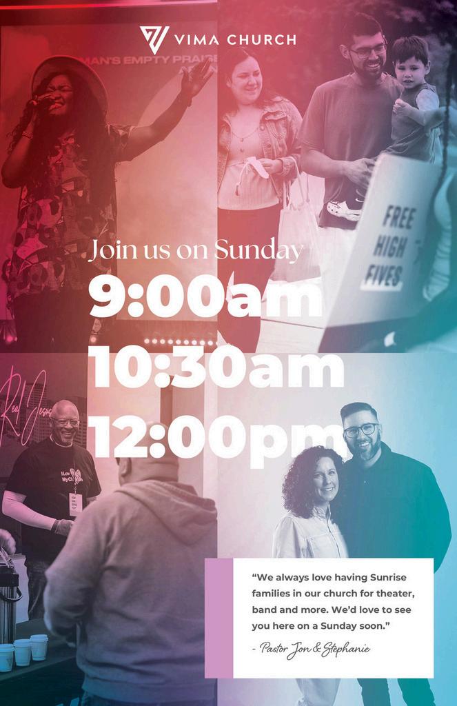 SunriseChristianAcademyhasseenourdramastudentsand programgrowoverour40yearhistory.Wearedelightedthat somanyofourstudentshavebeenabletodevelopthegifts andtalentsthatGodhasgiventhem.Manyofthesestudents havegoneontousetheirgiftsinavarietyofwaystobring glory to God and to impact others around them. As our programgrows,wewanttoinviteyoutobeapartofourplans forthefuture.ThedesignforournewAlphabuildingissetto becompletedbythefallof2025.Manyinterestedsupporters have already begun to contribute money for this building. The Alpha building will encompass several needed spaces, including an auditorium. This auditorium will seat approximately800peopleandprovideafacilitythatwillbe excellent for drama productions, music concerts, chapel services and other large audience venues. We invite you to praywithusaswetakethenextstepinprovidinganexcellent facilityforstudentstobetrainedfortimeandeternity.Your contributions are appreciated. We value your prayers and support and the many ways they have allowed SCA and its programstocontinuetogrow,offeringourstudentsaneven betterstagetodevelopandusetheirtalentstoglorifyGod.