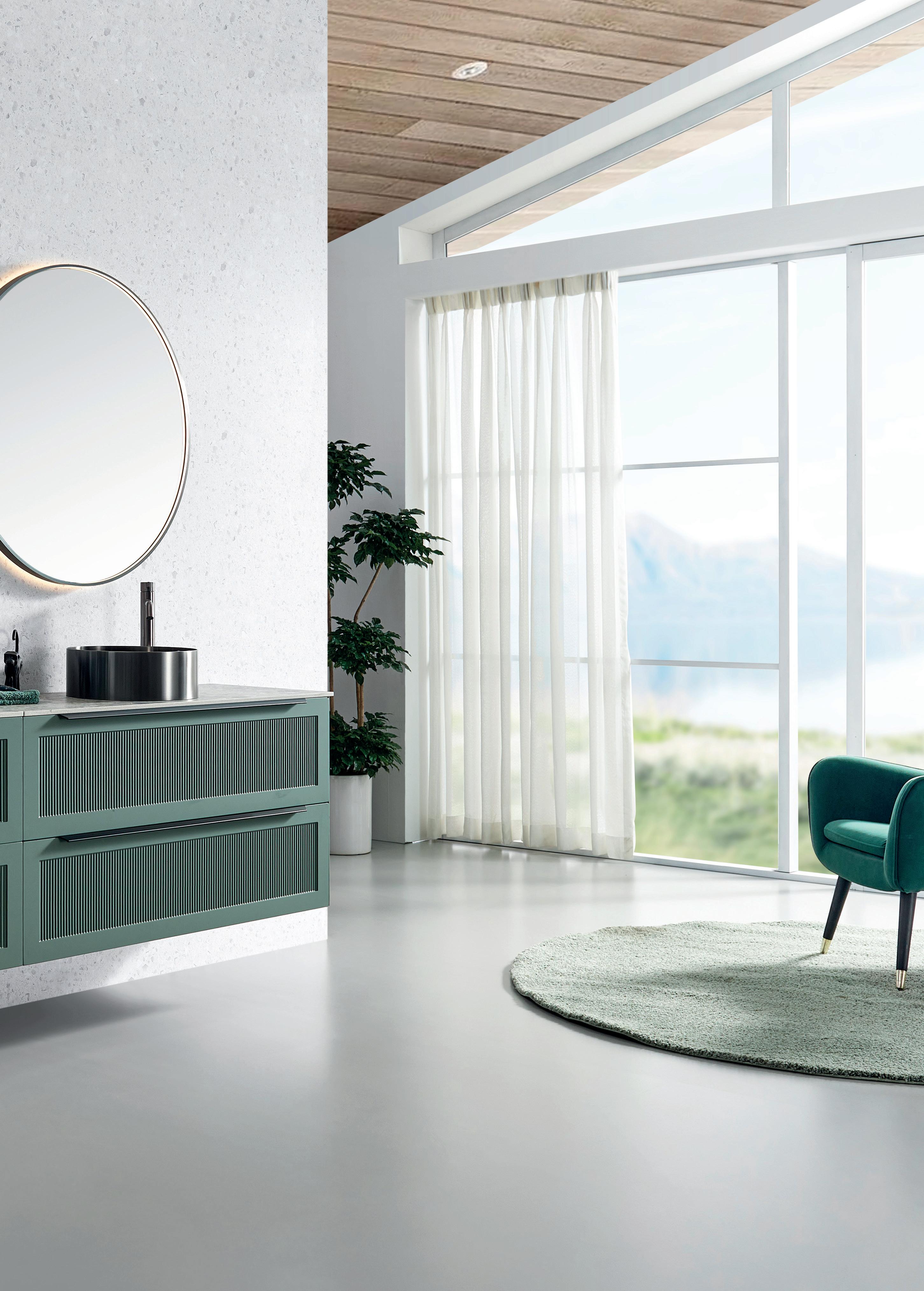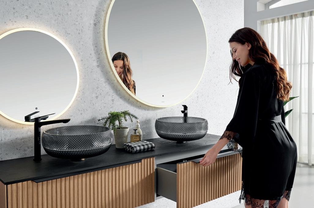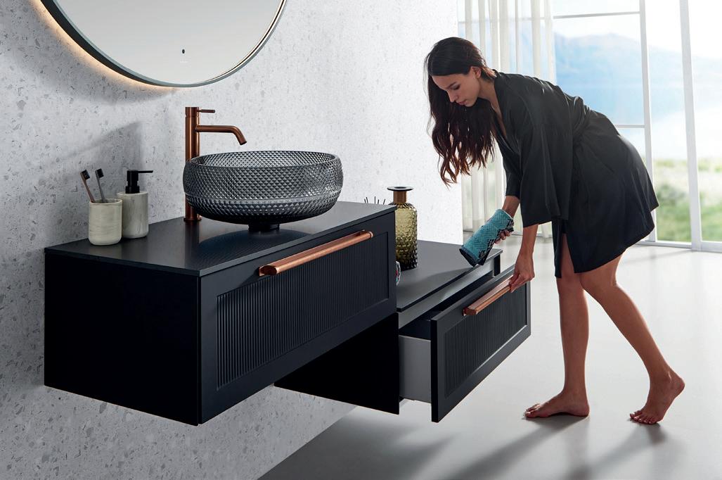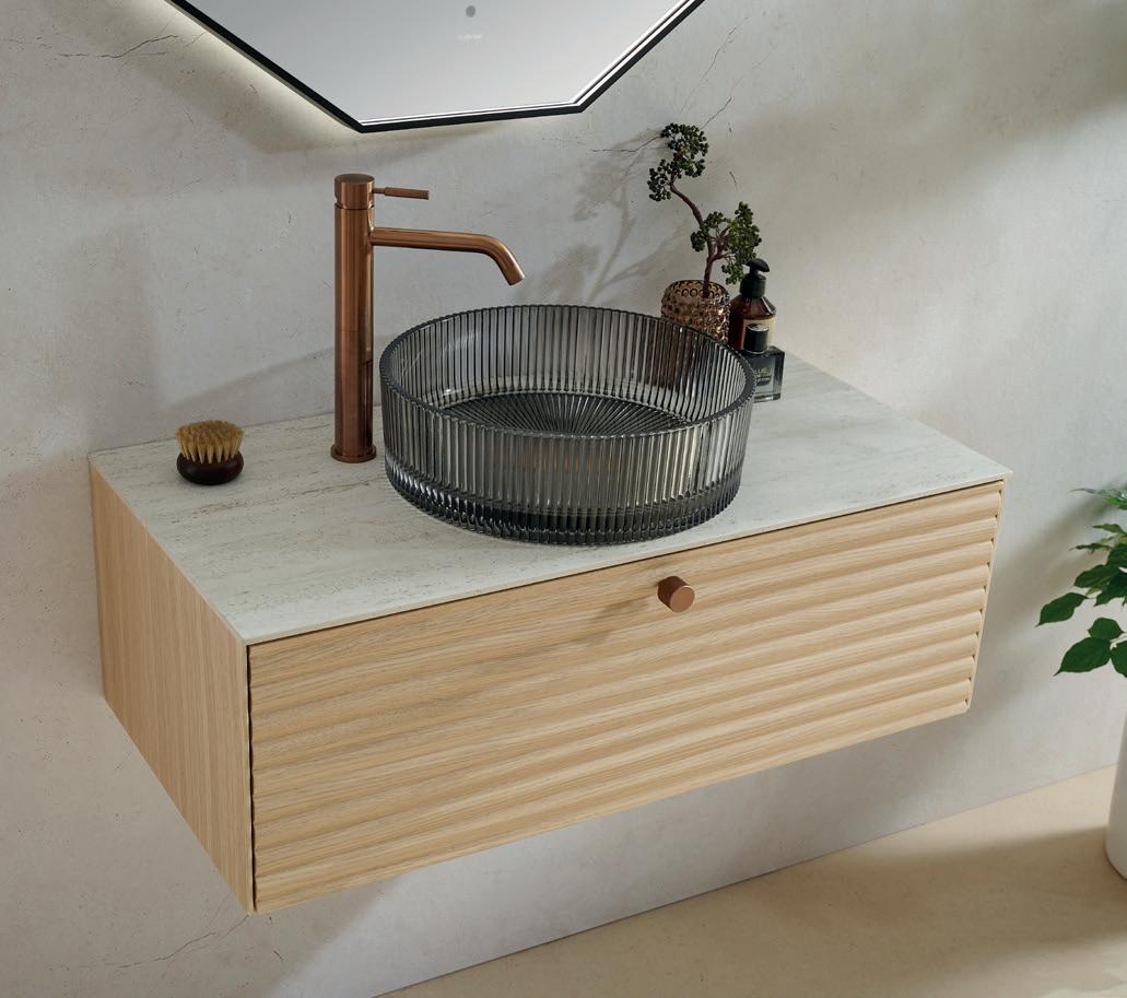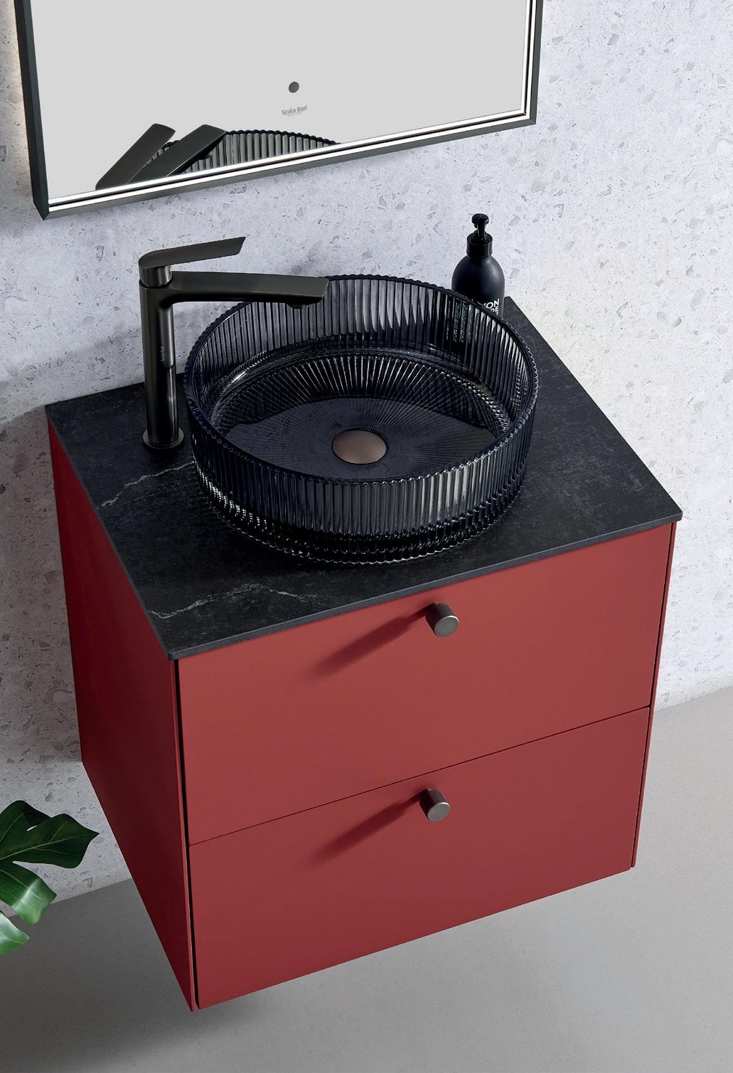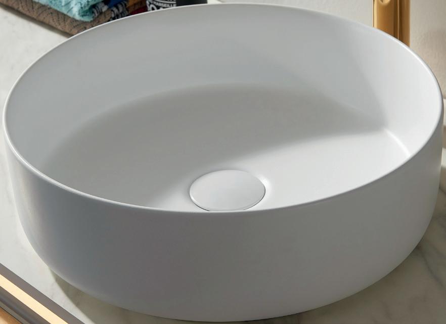 PAGANO og SANDRO servantene kommer begge i rund og oval form og i fargene Sort, Hvit og Karamell. De passer perfekt på ethvert baderomsmøbel. Se fra side 130.