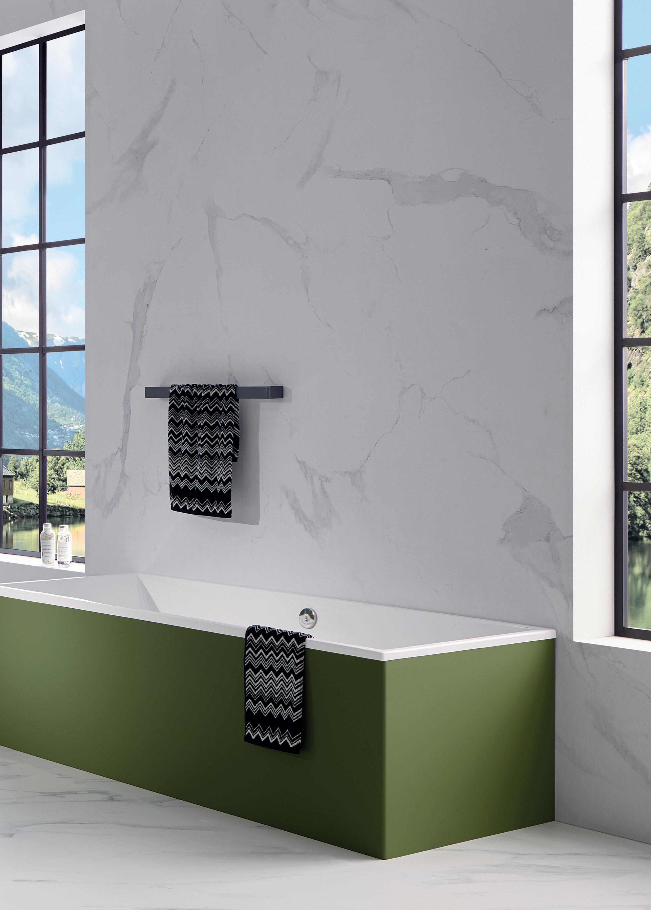 Med COMO seriene kan du enkelt bytte / variere farger og design på ditt baderom så ofte du vil! Og du kan selvfølgelig variere mellom alle våre design. Har du COMO fra før? Da kan du enkelt bytte til nye paneler i en ny variant om du ønsker det! Vi ønsker en grønn linje og er glade i gjenbruk. Så sett det ekstra settet i boden til du har lyst å variere tilbake senere.