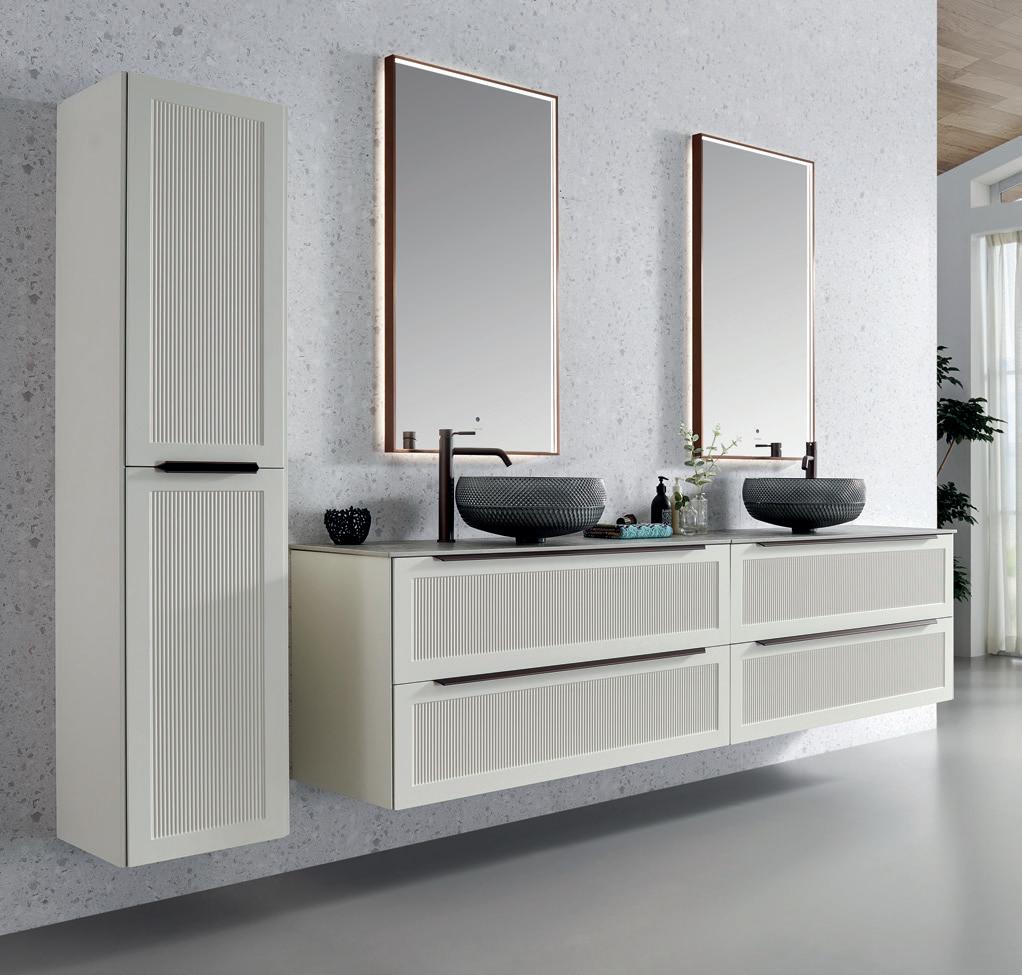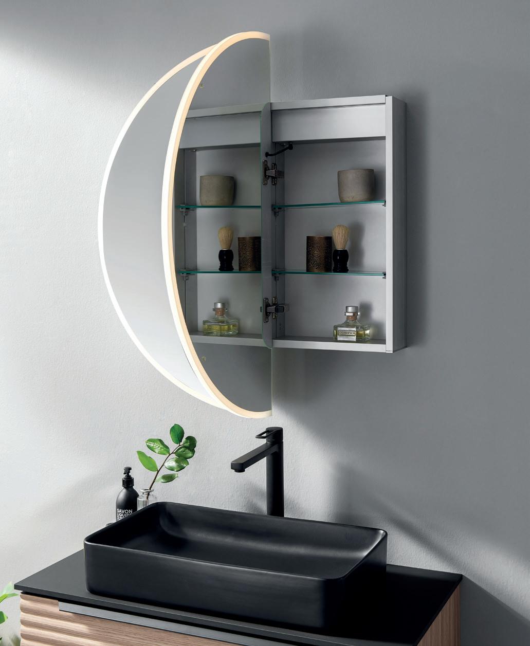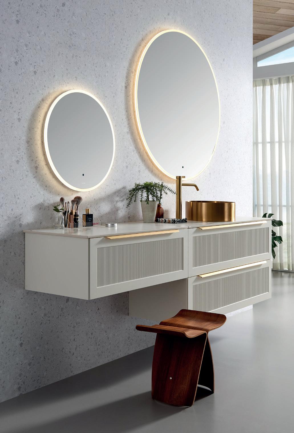 Vi utviklet designspeilet Brindisi for mange år siden og har nå tatt den til nye høyder. Se våre speiler og speilskap fra side 190.