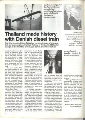 At a time when the United States had not even thought of changing their old steam engines, the State Railway of Thailand in 1930 set an example to the World by ordering six Danish diesel locomotives. It made headlines from Singapore to Bangkok, when the State Railway of Thailand in May 1932 success-