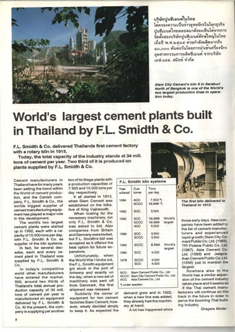 with F.L. Smidth & Go. as supplier of the kiln sYstems. ln fact, for several decades, each and every cement plant in Thailand was supplied by F.L. Smidth & Co.
