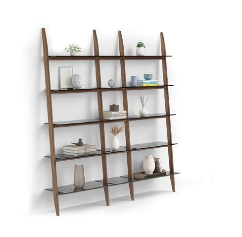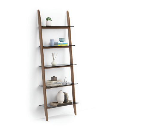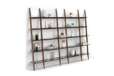 With its clean look and strong architectural lines, Stiletto adds dramatic contrast to any wall. Alone or combined to create a complete wall system, Stiletto can be used to fill spaces of any size. Featuring hardwood construction and tempered grey-tinted glass shelves, this unique ladder shelf system provides a sturdy foundation for a host of books and collectibles. Choose an individual shelf, a preconfigured system, or customize the perfect Stiletto solution by adding extension shelves as needed.