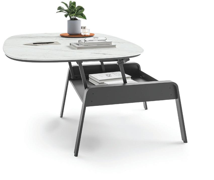 The unique platform and bed frame can be placed at four heights, accommodating mattresses of any size.