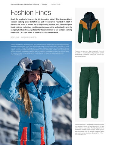 Fashion Finds Ready for a colourful time on the ski slopes this winter? The German ski and outdoor clothing brand Schöffel has got you covered. Founded in 1804 in Bavaria, the brand is known for its high-quality, durable, and functional gear. Its ski clothing collections combine performance, style, and reliability, and the company holds a strong reputation for its commitment to fair and safe working conditions. Let’s take a look at some of its core pieces below. EDITOR’S PICKS