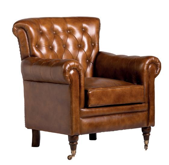 The Newham Chesterfield Armchair is a luxurious, hand-crafted piece, featuring plush button tufting, roll-top arms, and made from supple buffalo leather in a rich tan shade. Each chair is uniquely crafted by skilled artisans in India, ensuring that no two are exactly the same. This inviting armchair is great for relaxing at the end of a long day, whether in a peaceful library or beside a roaring fire. £749. www.wheresaintsgo.co.uk