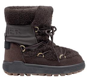 Elevate your après-ski style with the Chamonix snow boots in rich chocolate brown, a luxurious blend of lambskin, grained leather and suede. Embossed logos and a signature detail on the overcut tongue lend a distinctive, iconic touch. Inside, plush microvalboa fleece promises cosy warmth, while the robust rubber sole, complete with fold-out spikes, delivers exceptional grip on icy winter terrain. £500. www.bogner.com