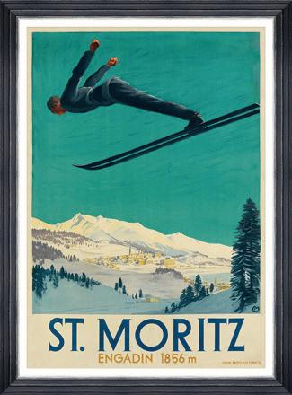 Does anywhere evoke the feeling of winter glamour more than the luxury resort of St Moritz? The luxury Swiss resort is known for hosting the Winter Olympics and is featured in this vintage poster of a ski jumper. Printed on lithographic paper, it includes a black washed frame, white mountboard, and float glass. £252.
