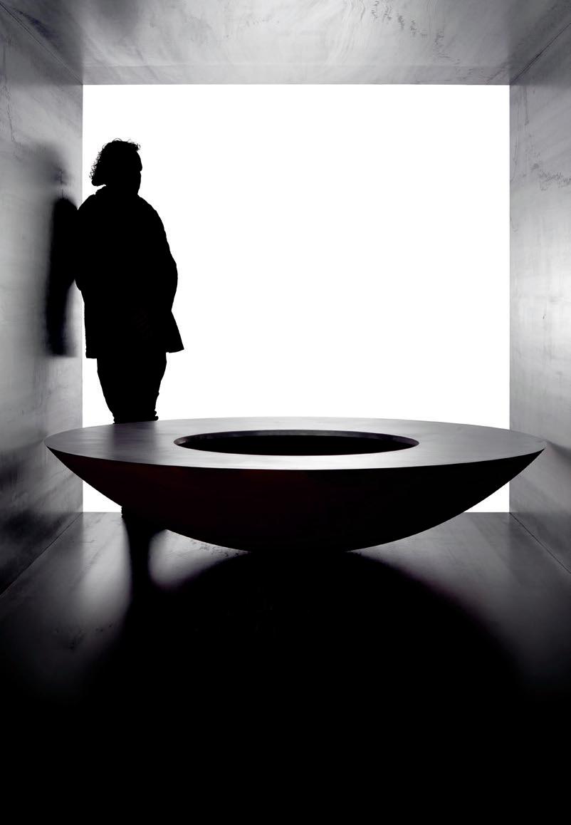well as the materiality. While the bowl has a warm, archaic rust-coloured finish, the broad ring for indirect grilling shines in bright, almost silvery steel. During the artistic process, ring and bowl are welded together seamlessly to create a perfectly minimalist form. “The idea is to create a sculptural archetype for fire, a classic heirloom which, in the case of the Feuerring Luna Grande, can last for 1,000 years," says Reichlin. That is why each Feuer-