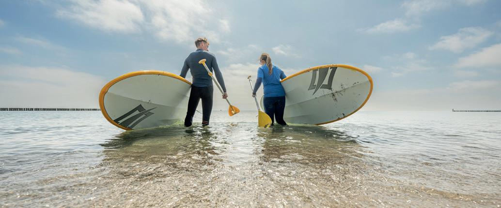 Ever stood on a stand-up paddleboard (SUP) made of glass, did yoga on one of these boards, or let your dog join in? At the Baltic Sea in Schlewig-Holstein the range of SUP offerings is large.