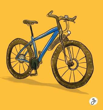In the UK, you can let your pedals spin backwards as much as you want, and you use the handbrakes for stopping or slowing down. But in Sweden, many bikes have a brake built into the pedalling machinery. You brake by going backwards on the ped-