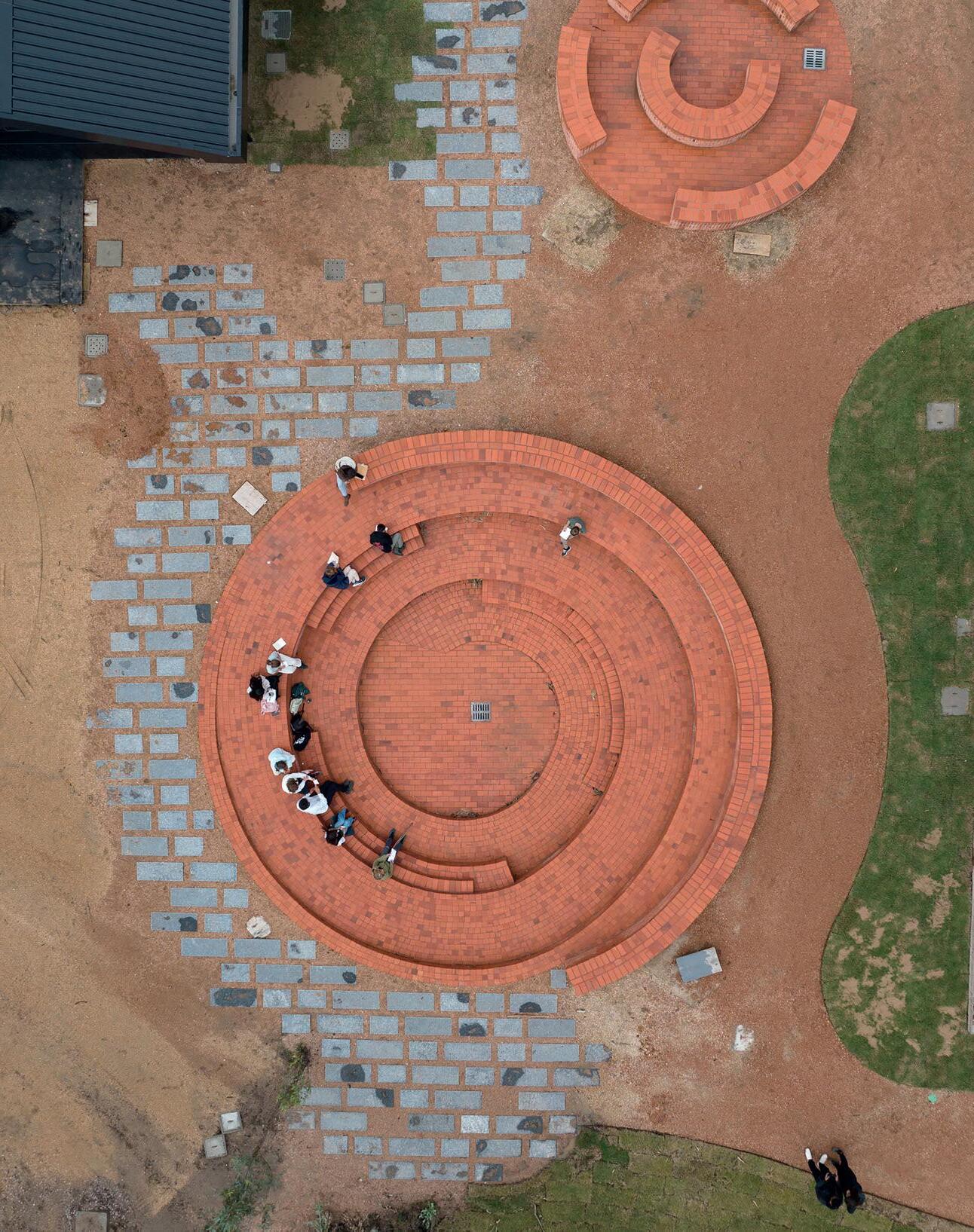 The circular main building blends harmoniously into the area’s geometric landscape laid out by the landscape architect C. Th. Sørensen.
