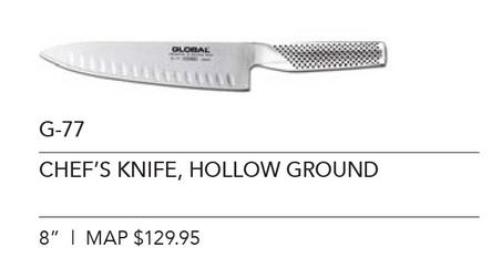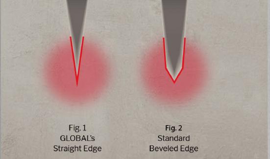 Unique convex edge of the GLOBAL blade makes cuts smoother, requiring less effort.