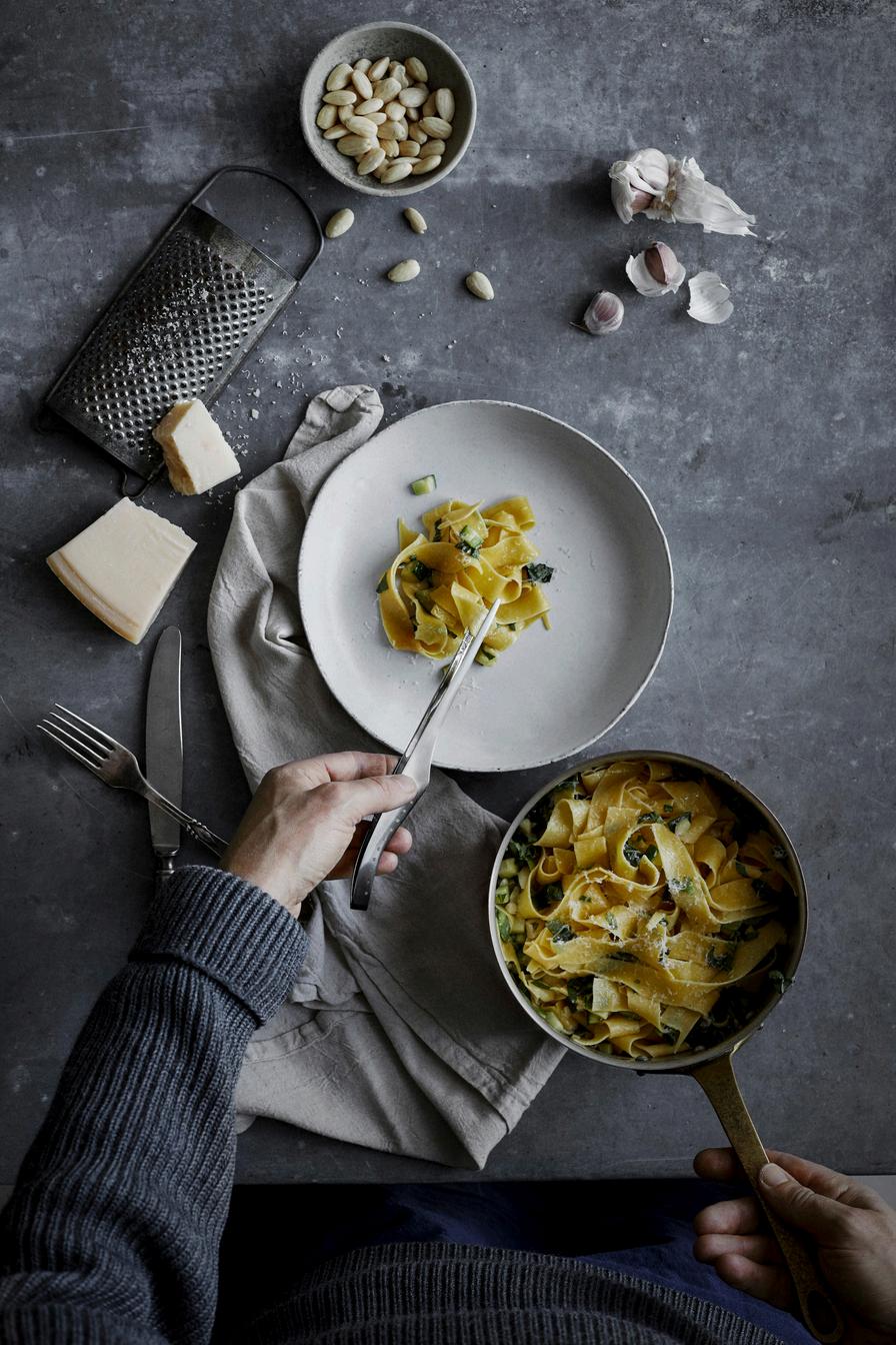Each blade is individually hammered by hand and designed so that small hollows create air pockets between the blade so food elegantly falls away from the surface.