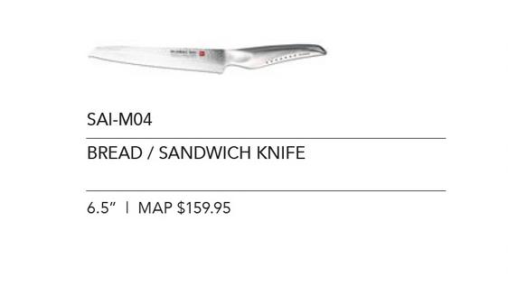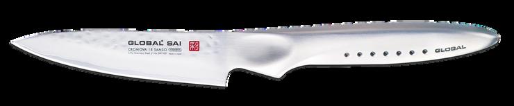 GLOBAL SAI, designed by renowned industrial designer Komin Yamada, pays homage to the Samurai tradition of sword making. The slightly longer curved ergonomic handle provides a comfortable grip and features 7 signature black dots which represent the 7 Samurai codes of honor and moral principles.