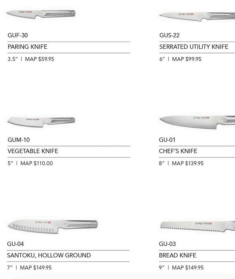 (G-2, G-9, G-21, G-74, GS-5, GS-6, GSF-15, GSF-22, GKS-210, WOODEN KNIFE BLOCK)