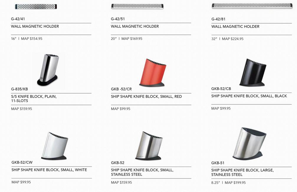 (G-2, G-3, G-9, G-38, G-48, GS-3, GS-7, GS-14, GS-38, SS KNIFE BLOCK)