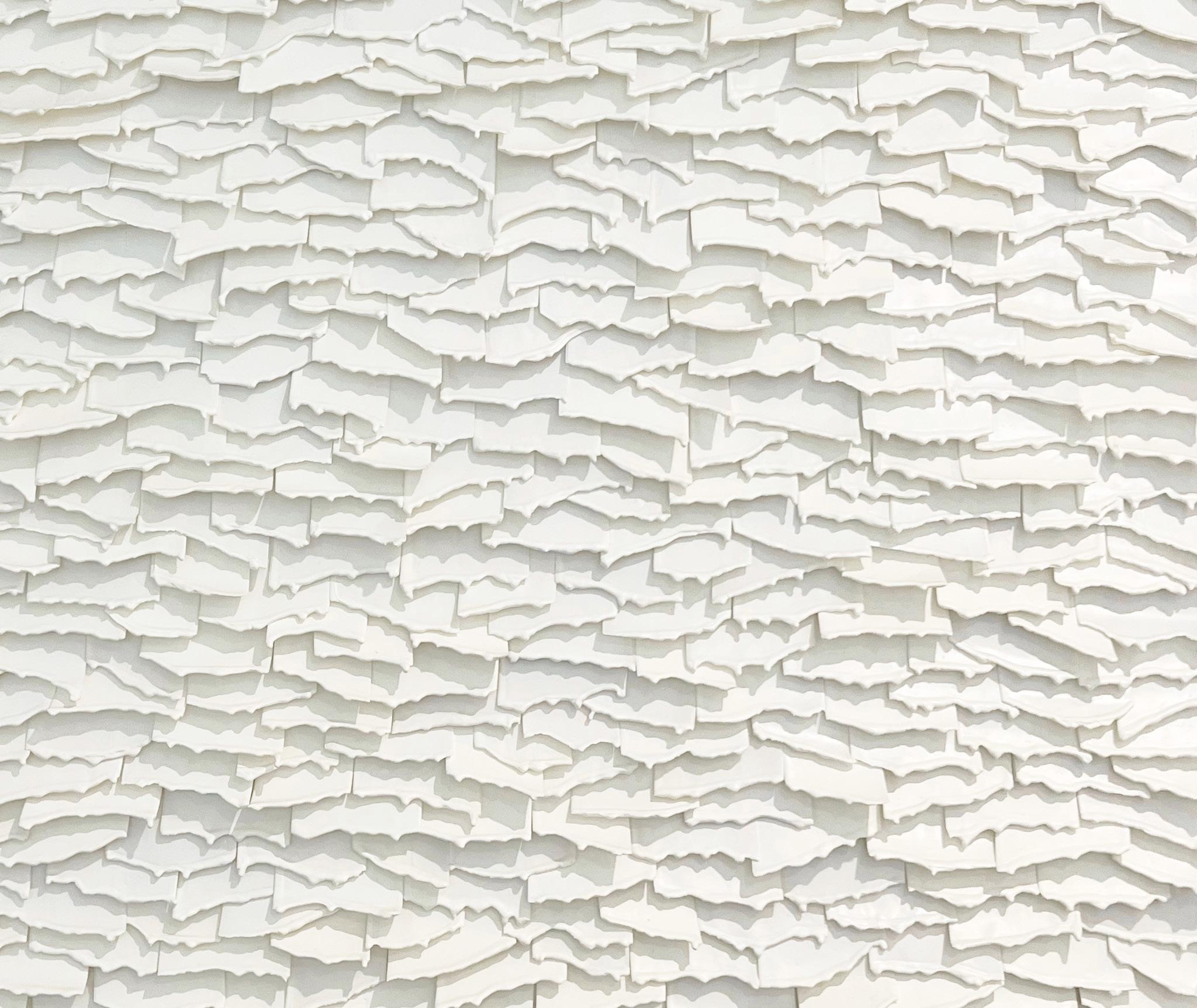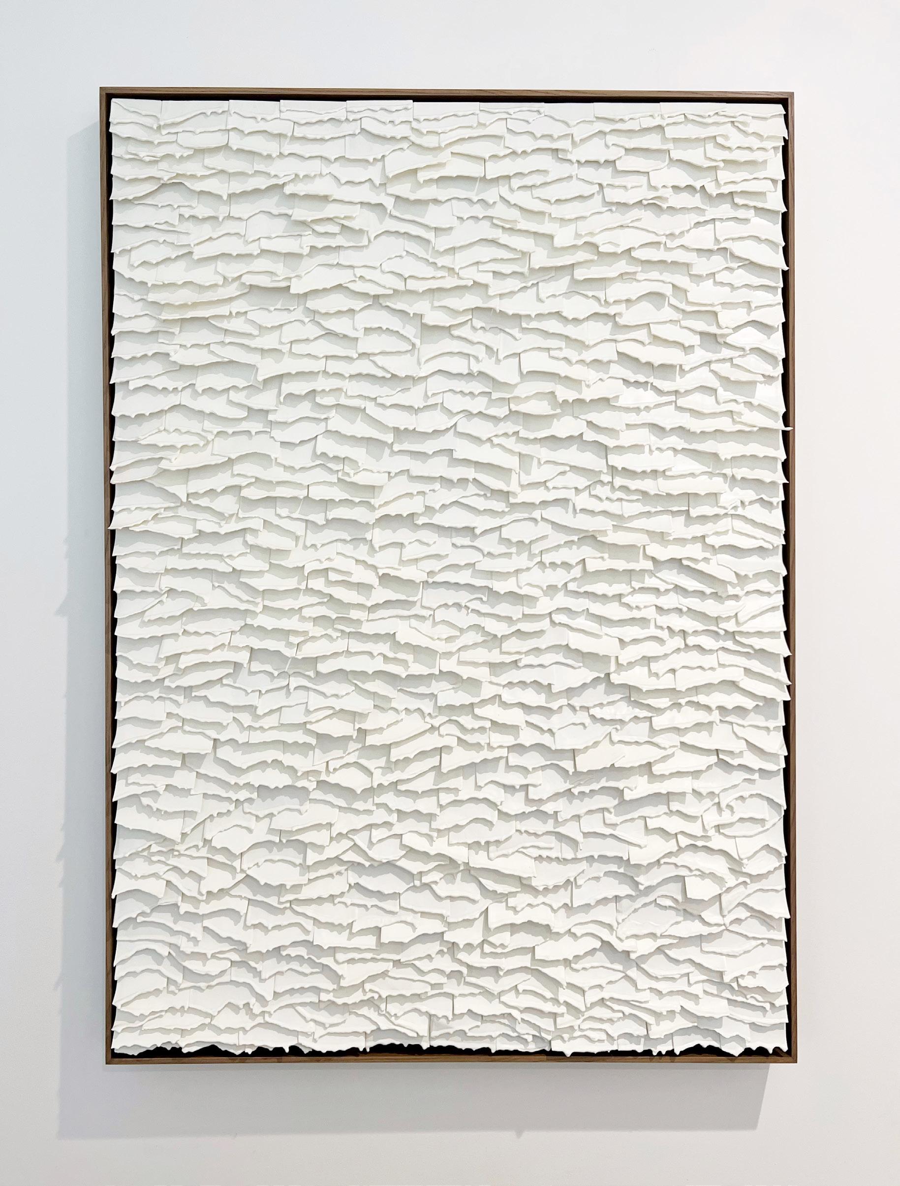And hundreds of layered waxed receipts, their buttery surface undulating in hypnotic rhythm, create a quiet space for contemplation.