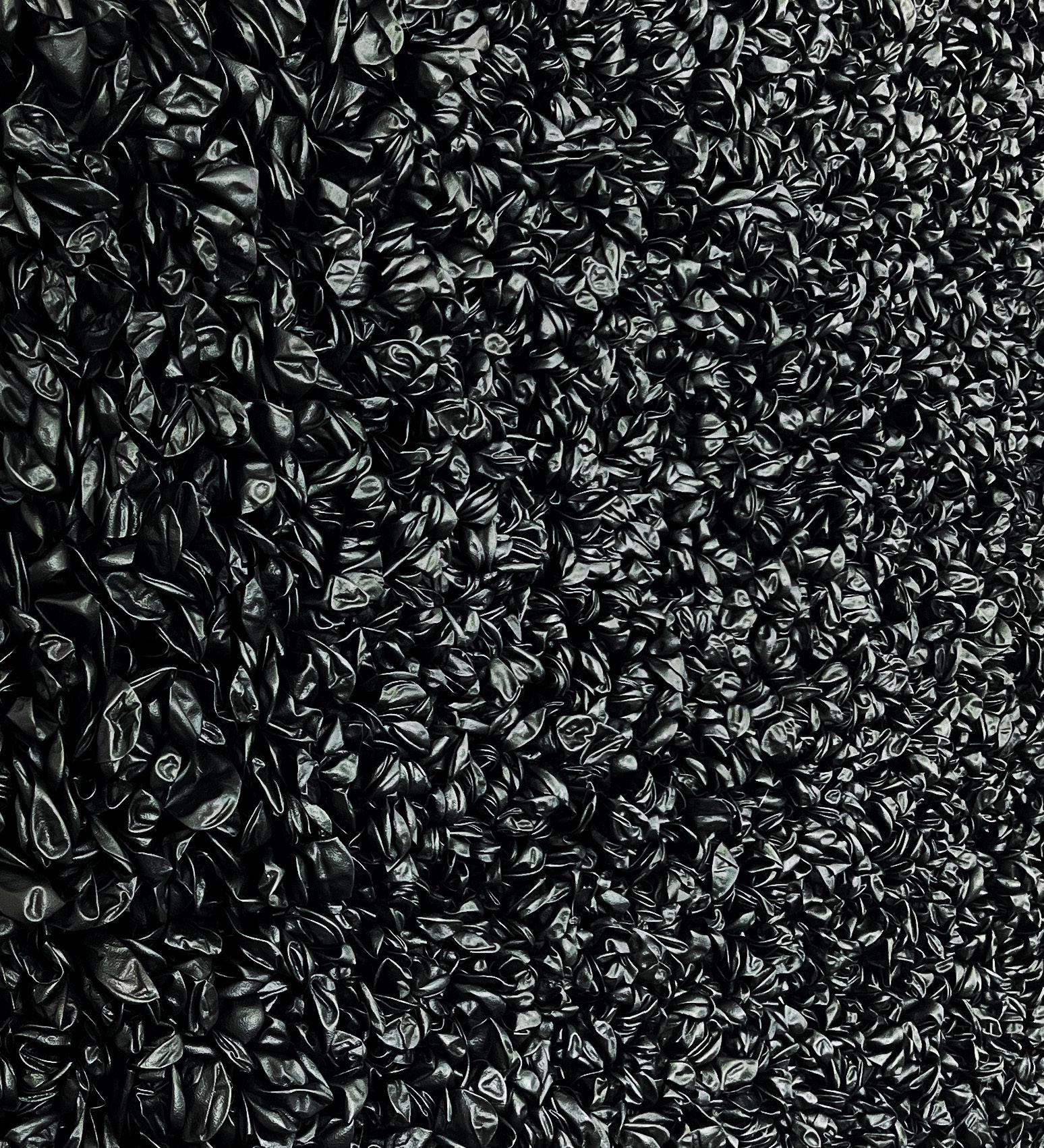 Thousands of discarded, disinfected cigarette butts, individually dipped in street striping paint and sewn on large canvas become an urban tapestry.