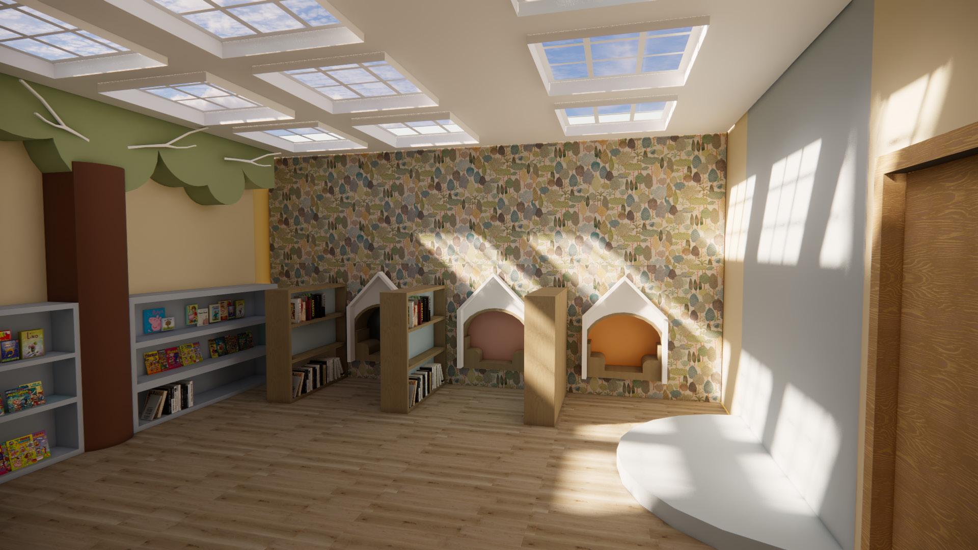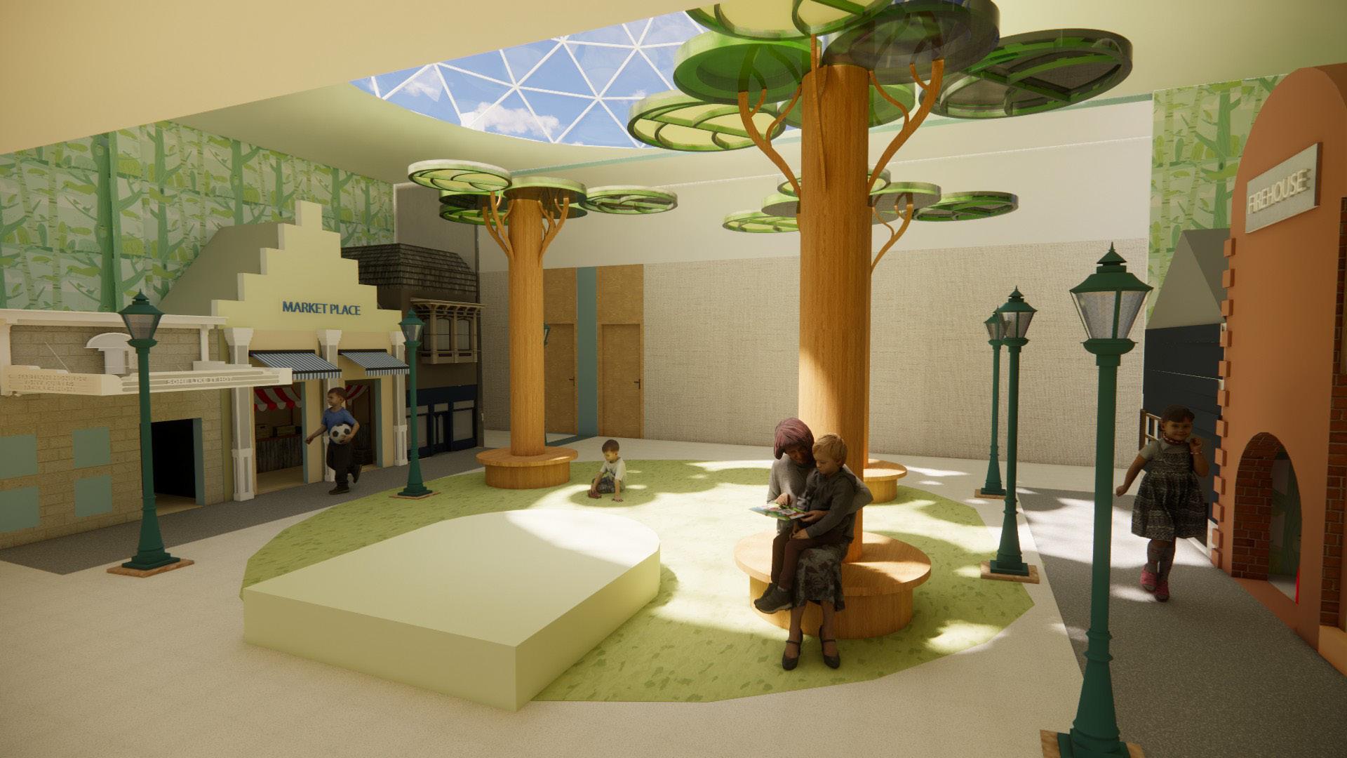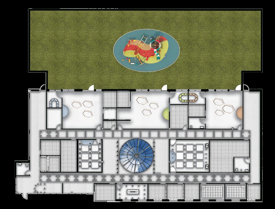 Blending indoors and outdoors spaces, to encourage physical engagement into their natural environment and community as well developing gross motor skills