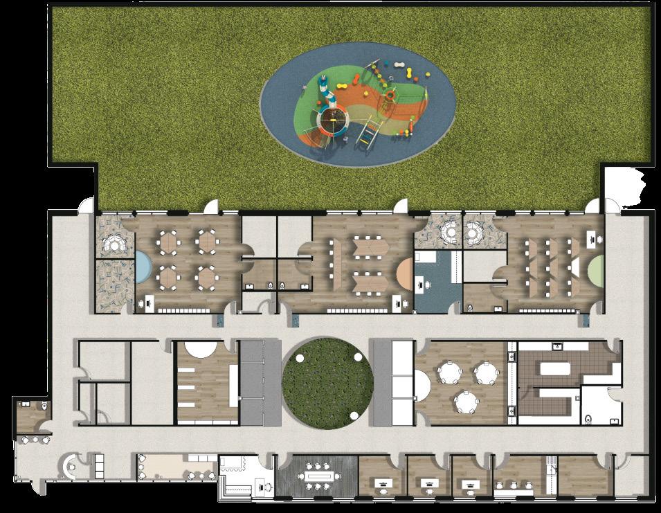 The layout will reflect a neighborhood type environment with flexible, interactive spaces to promote teamwork and real world learning experiences