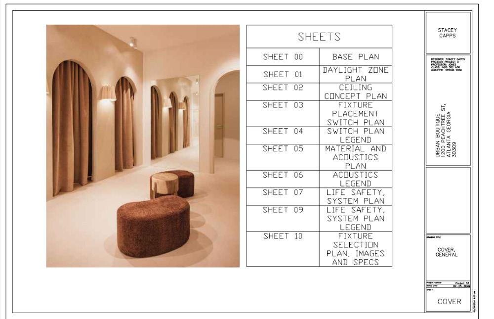 This CD set shows an RCP for Urban Boutique a luxury retail store. To cohesively design for the male and female demographic through applied materiality on the RCP
