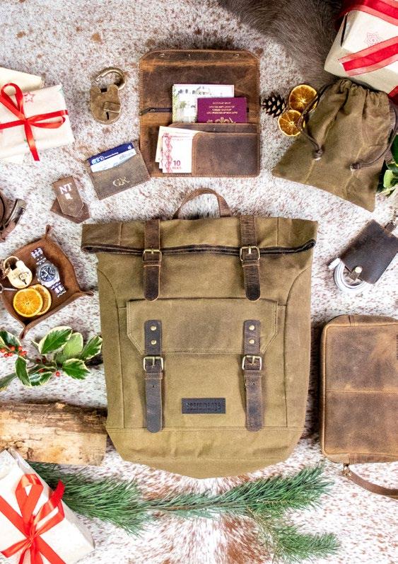 1. Leather Rucksack FLBG14011 - £145 2. Leather Camera Strap OLGS15235- £42 3. Slim Leather Journal LNBS26006 - £23.50 4. Leather & Canvas Foraging Pouch OLGS15298 - £15 5. Leather Travel Wallet OLGS15027 - £42 6. Leather Card Holder OLGS15301 - £13.50 Travel Gifts For those who wander 24 www.scaramangashop.co.uk