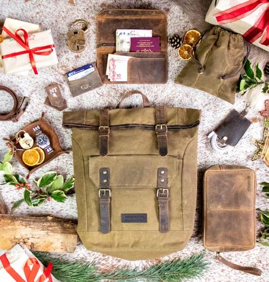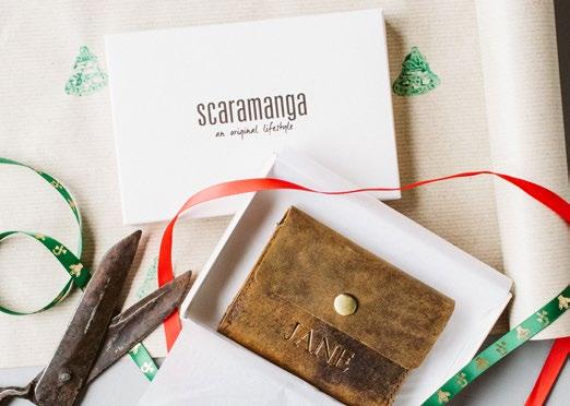1. Brown Leather Belt OLGS15270 - £25 2. Magnet Leather Bookmark OLGS15292 - £5 3. Leather Card Holder OLGS15301 - £13.50 4. Slim Leather Journal LNBS26006 - £23.50 5. Canvas Foraging Pouch OLGS15298 - £15 6. Leather Valet Tray OLGS15272 - £13.50 7. Canvas & Leather Rucksack FLBG14071 - £130 8. Deluxe Leather Wash Bag OLGS15294 - £45 9. Cable Tidy Keyring OLGS15299 - £15 www.scaramangashop.co.uk 21
