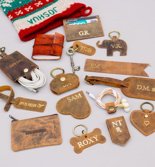 Leather Jewellery Roll OLGS15281 - £35 Leather Purse OLGS15022 - £34 7. Leather Luggage Tag OLGS15203 - £6.75 8. Yoga Mat & Picnic Blanket Carrier OLGS15296 - £47.50 9. Recycled Christmas Decorations £2.75 - £4.25 www.scaramangashop.co.uk 11