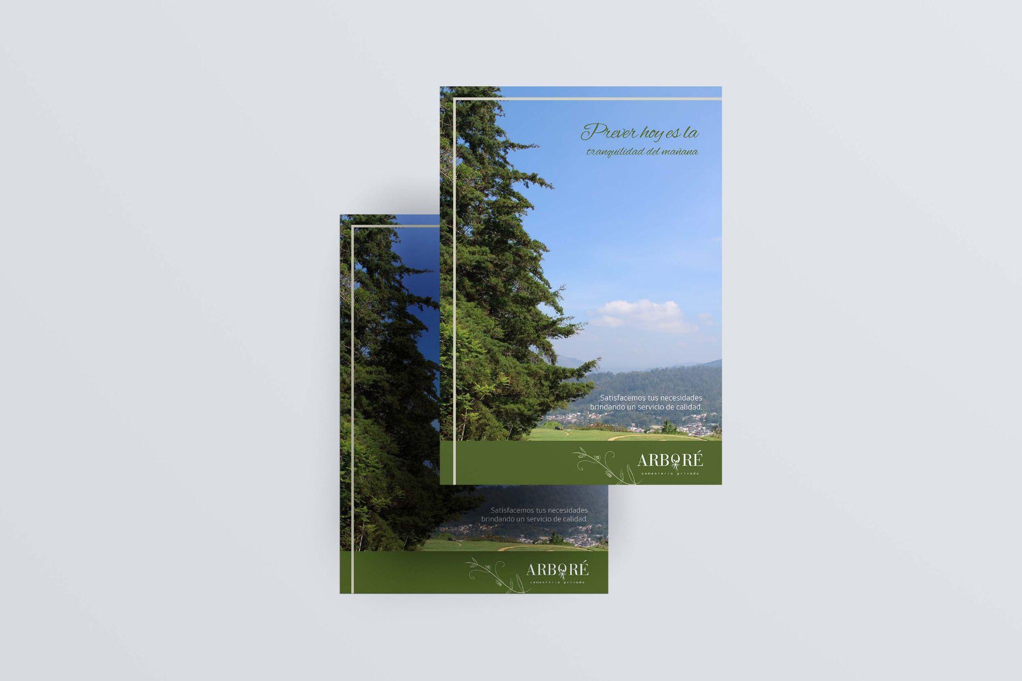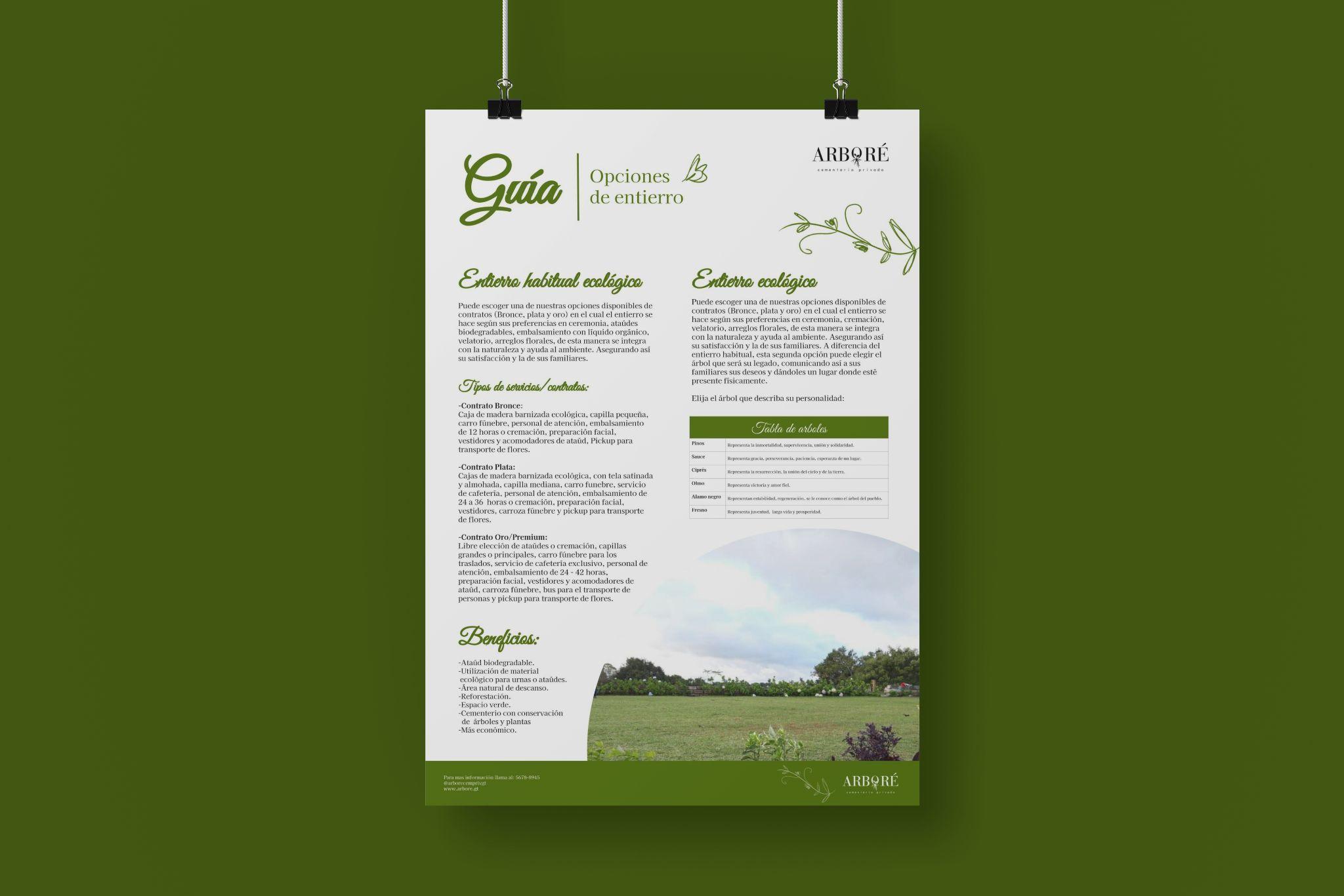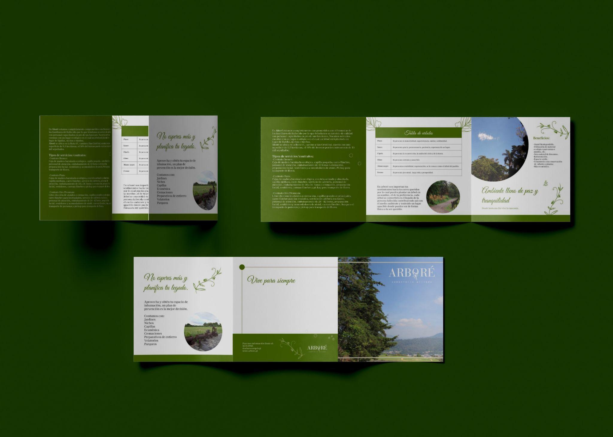 Presentación de guía y folleto detallando los servicios que ofrece Arboré.