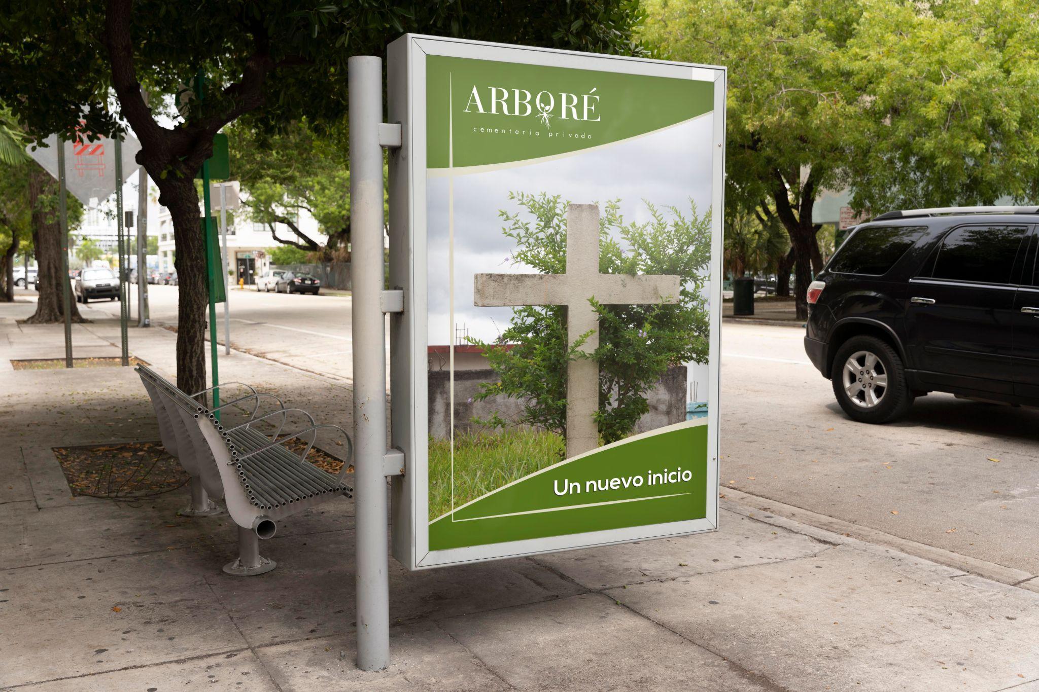 Se utilizará una estrategia de marketing sensorial y experiencial, en la cual se presentará el servicio desde otro punto de vista diferente al convencional para estos servicios, la vida y no la muerte. Se están utilizando medios como mupis, vallas, guías del lugar, etc. En exteriores se colocarán mupies junto a pequeños árboles, los árboles utilizados en nuestro cementerio son árboles bastante aromáticos, así que este aroma podrá ser percibido desde los puntos en los que se ubiquen los árboles con algún mensaje promoviendo el servicio.