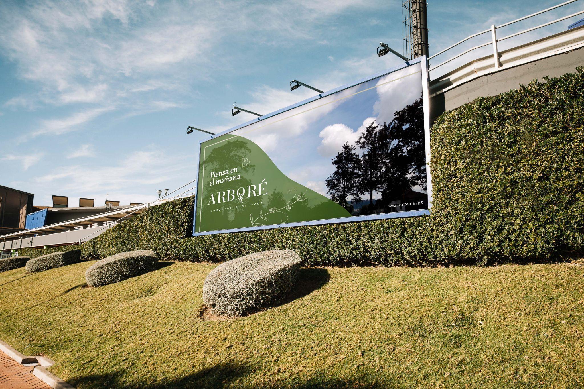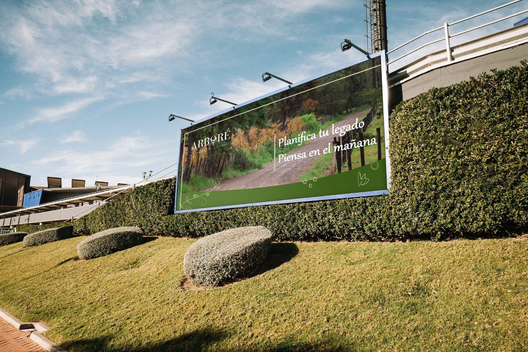 Colocación de valla e infografía sobre los servicios de Arboré.