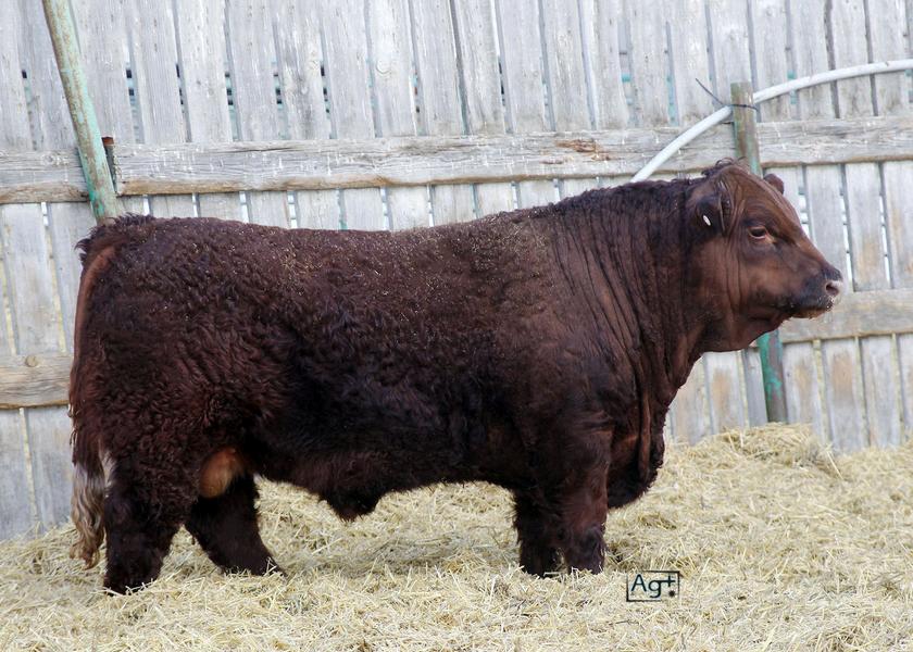 One of our first red bulls in the offering showing exceptional calving ease with great performance numbers and a lot of stretch for a heifer bull YFS 4M’s dam is one of our most consistent cows with a calf in the replacement or sale pen every year. Scurred.