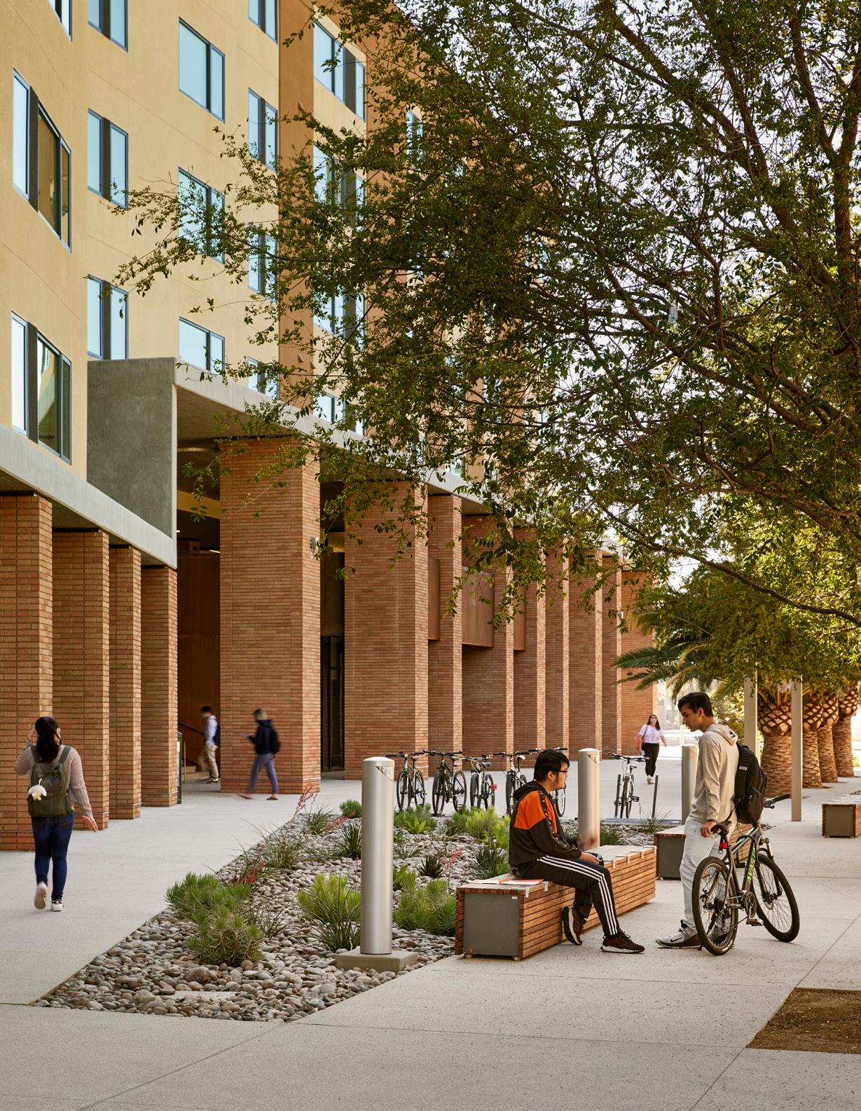 Phase Two of The North District represents a unique collaboration between the University of California, Riverside (UCR) and the Riverside Community College District (RCCD) to create a joint intersegmental student residential community located on the UCR campus. Funded in part through the Higher Education Student Housing Grant Program established in the state’s senate bill (SB) 169, a portion of the project’s units are designated as affordable, offering low-cost housing for students enrolled in either institution. In addition, the project provides RCCD students with a campus residential experience and courses of study geared toward the UC/CSU transfer portals while providing UCR students a more diverse social and academic community.