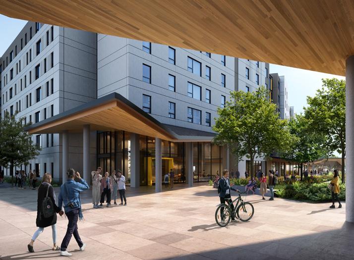 Cal Poly Humboldt is experiencing a rebirth and rebranding as the third polytechnic university in the California State University (CSU) system. Currently undergoing an associated campus master plan, the University fast-tracked an upper division undergraduate apartment project to meet its immediate demand for housing. Originally envisioned as an 800-bed community, an initial site study by SCB identified an opportunity to increase the capacity by 25% to 1,000+ beds. The University was able to secure additional funding from the state to support the larger project, helping to ensure its affordability. Utilizing a collaborative design/build delivery method, the project is SCB’s fourth student housing project to utilize this costeffective delivery method and its third in partnership with Sundt Construction.
