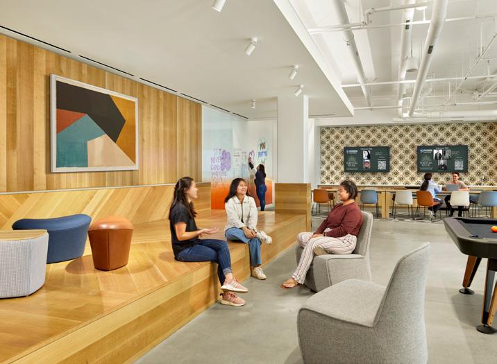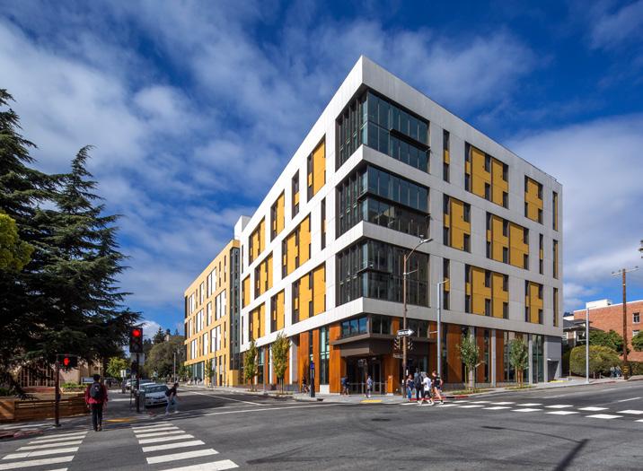 The building provides 776 beds of firstyear undergraduate housing organized into a series of pods made up of double occupancy rooms and gender-inclusive bathrooms. Student amenities including an academic success center, fitness center, and entry lounge along with 7,000 square feet of ground floor retail activate Dana and Durant Streets. The building also provides a new home for Stiles Hall, a mission-driven community service organization that has engaged UC Berkeley students for over 125 years.