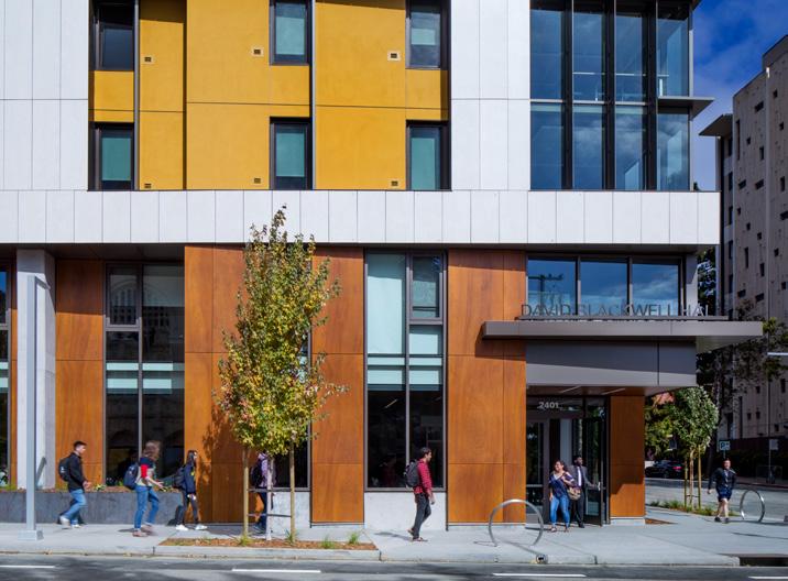 David Blackwell Hall is a new residence hall at the University of California Berkeley. Developed through a Public-PrivatePartnership (P3) with American Campus Communities (ACC), the 184,000-squarefoot mixed-use project combines urban planning principles, innovative sustainable systems, and campus design sensibilities to create a unique new addition to both the UCB campus and the South Berkeley community.