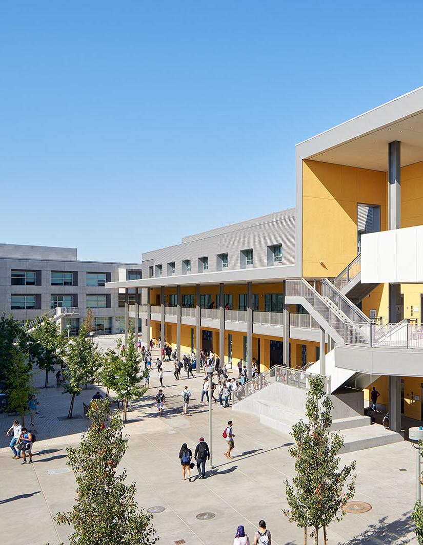 Phase 2 of San José State University Campus Village is a 850-bed student residence designed to foster community and meaningful social engagement amongst its freshmen residents. To achieve this goal and introduce students to the vitality of high-density living in an urban context, the design team included numerous communal spaces such as social lounges, a multi-purpose room, recreation room, group study lounges, and two outdoor courtyard recreation spaces.