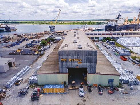 Ee company, which originated in England more than a century ago, started operations in Charleston in 1988 a er a customer in England needed an export packing company to handle their machines in Charleston. Neal Brothers later started a shipside service that allowed breakbulk cargo coming into Charleston ports to be picked up right from the hook of the ship. What started as a small group of three or four employees has grown today to a team of more than 75 with over 1.5 million square feet of warehousing and distribution space among six facilities.