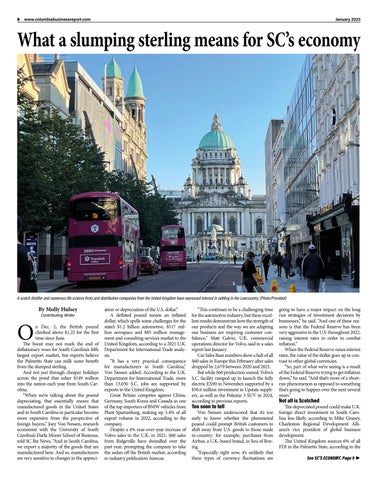 INSIDE Upfront 2 SC Biz News Briefs 4 In Focus: Workforce and Staffing 16 List: Professional Staffing Firms 18 List: HR and Payroll 19 At Work ............................. 20 Viewpoint 23 Pounds for dollars What the strength of the British pound means to the S.C. economy. Page 8 Coffee in a clutch Drive-thru java is having a moment in the Midlands. Page 4 Focus Staffing expert talks about how COVID permanently changed the workplace. Page 16 Forecasting 2023 Economist Stephen Slifer shares what the tea leaves tell his trained eye. Page 12