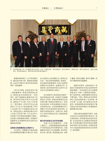 设立商团中心的签署仪式。蔡其生会 长说: “我们将和裕廊集团、标新局、 资讯通信发展管理局、劳动力发展局 和国际企业发展局一起紧密合作,让 商团中心成为推动传统行业和中小企 业合作与发展的核心基地。” 设立商团中心是总商会在集思广 益后所提出的方案,并得到了裕廊集 团的大力支持。总商会希望通过这项 举措为属下商团会员提供办公、培训 和活动场地,同时促进商团之间的交 流和跨界合作。众多商团聚集在同个 屋檐下也可实现资源共享的目的,为 商团节省营运成本,互惠互利。商团 中心也将开放给还未加入总商会的商 团申请加入。 重点研究家族企业的传承课题 所谓“长江后浪推前浪,一代新 人换旧人”,没有轮替更新的总商会就 不可能有超过百年的辉煌历史。本届 董事会也选出了6位新董事,其中两位 是女性。他们是:胡进胜副主席、吴斯