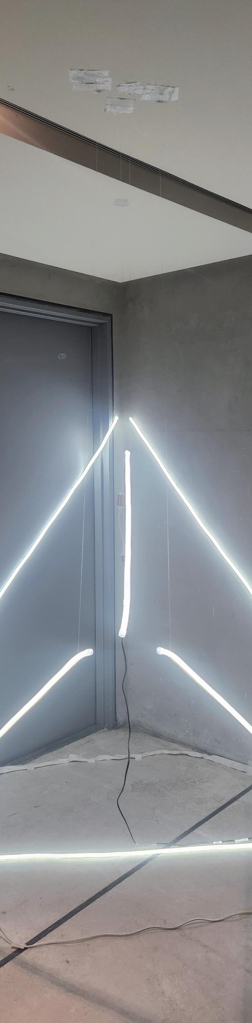 這件作品主要是想講述人們在觀看或理解人事物的角 度,人們常常單看某一面就斷定是非,但這樣的方式只會看 到人事物的部分或較為破碎事實而產生誤解,我自己也很常 被誤會,身邊的其它人會以他們所看到的單方面的部分而斷 定我是怎樣的人,我自己是挺不喜歡那感覺的,我的作品就 是運用空間錯視的概念,當你在其他周圍的角度觀看時,你 會看到感覺像是整體是分離的感覺是不完全的,也不太能看 得出真正的形狀,但當你到特定角度時,你會發現他會變成 一體的和他真正的樣貌,就像我們在觀看和理解人事物上不 能只從某個角度和是面去看,而是要透過多個角度多個面像, 這樣才能看到事物的真實樣貌。